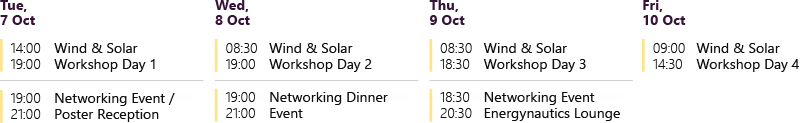- In addition to the main event (Workshop) further accompanying events can be booked separately (tutorial, dinner, study trips). Learn more about the individual events on the corresponding websites as soon as they are available.
